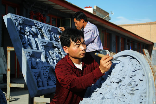 临夏砖雕又称河州砖雕,源于汉朝,成熟于明清,盛行于当代,是临夏各族人民智慧的结晶和灿烂文化的代表,以其浓郁的民族特色,古朴典雅的艺术魅力,出神入化的表现手法,成为河湟文化的主要代表之一。2006年临夏砖雕被列入第一批国家级非物质文化遗产名录。近年来,我县加大砖雕产业扶持发展力度,先后成功兴办了神韵砖雕有限责任公司、能成砖雕有限公司、青韵砖雕有限公司、祥泰工艺品有限责任公司四大龙头企业,实施了占地55亩的能成砖雕产业园建设项目。年生产砖雕产品17000多㎡、砖雕工艺品5000多件,有近900多人从事雕刻及安装,年实现产值1.7亿元。2012年,又争取申报了计划总投资1.5亿元、占地120多亩的临夏青韵砖雕文化产业园建设项目,砖雕产业成了我县工业经济发展的新亮点。