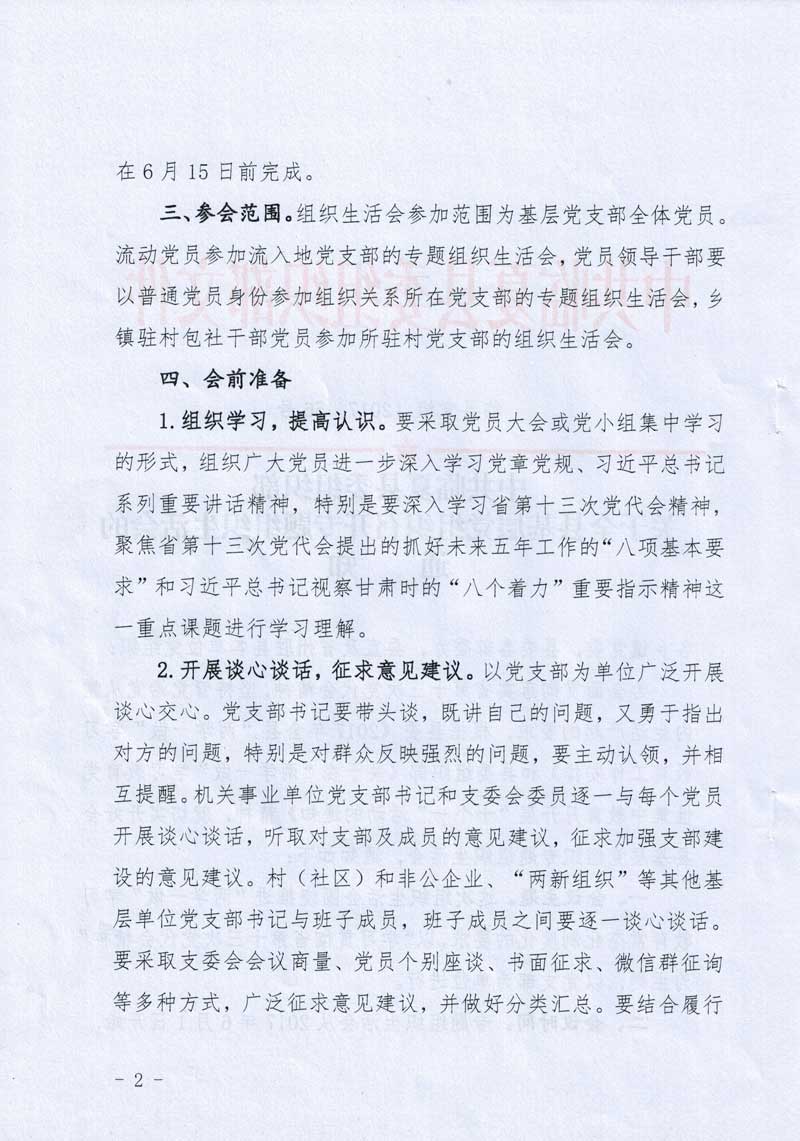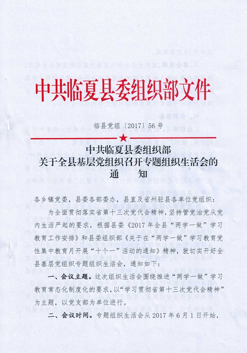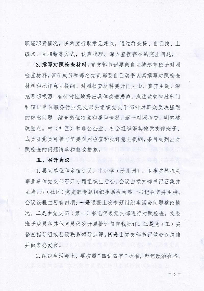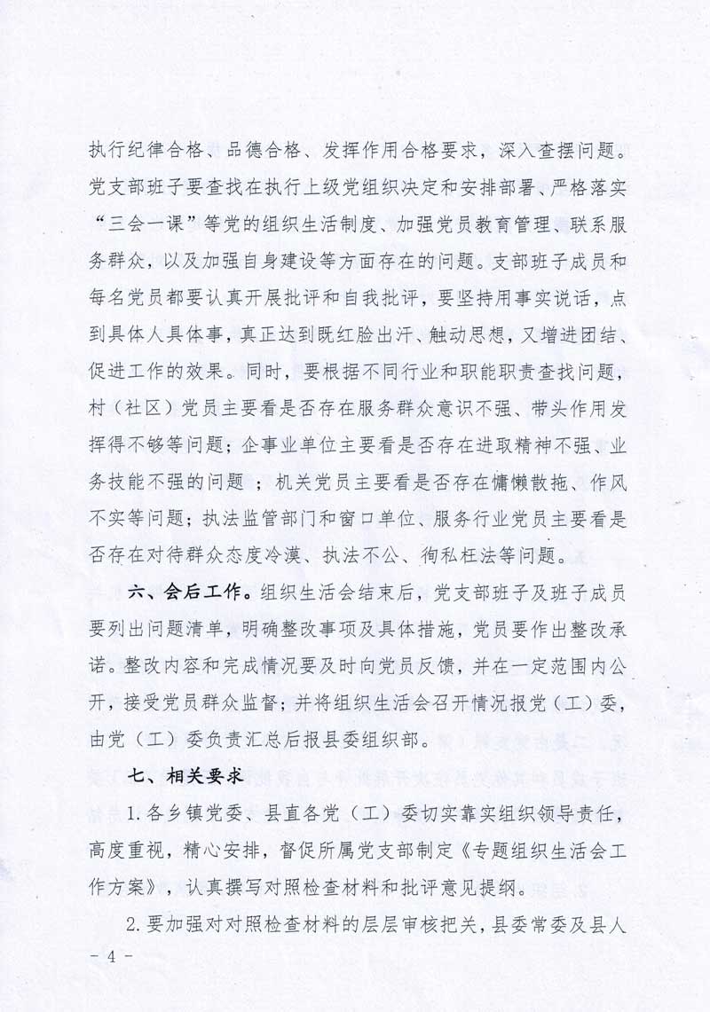 关于全县基层党组织召开专题组织生活会的通知